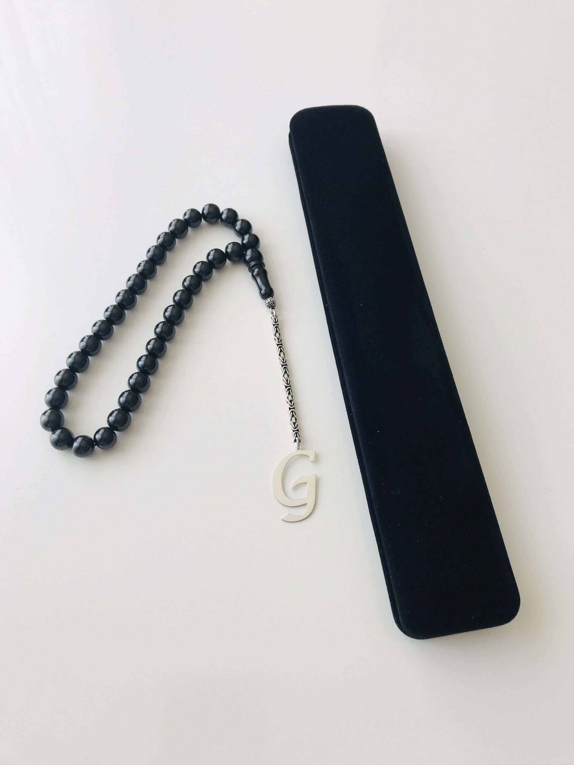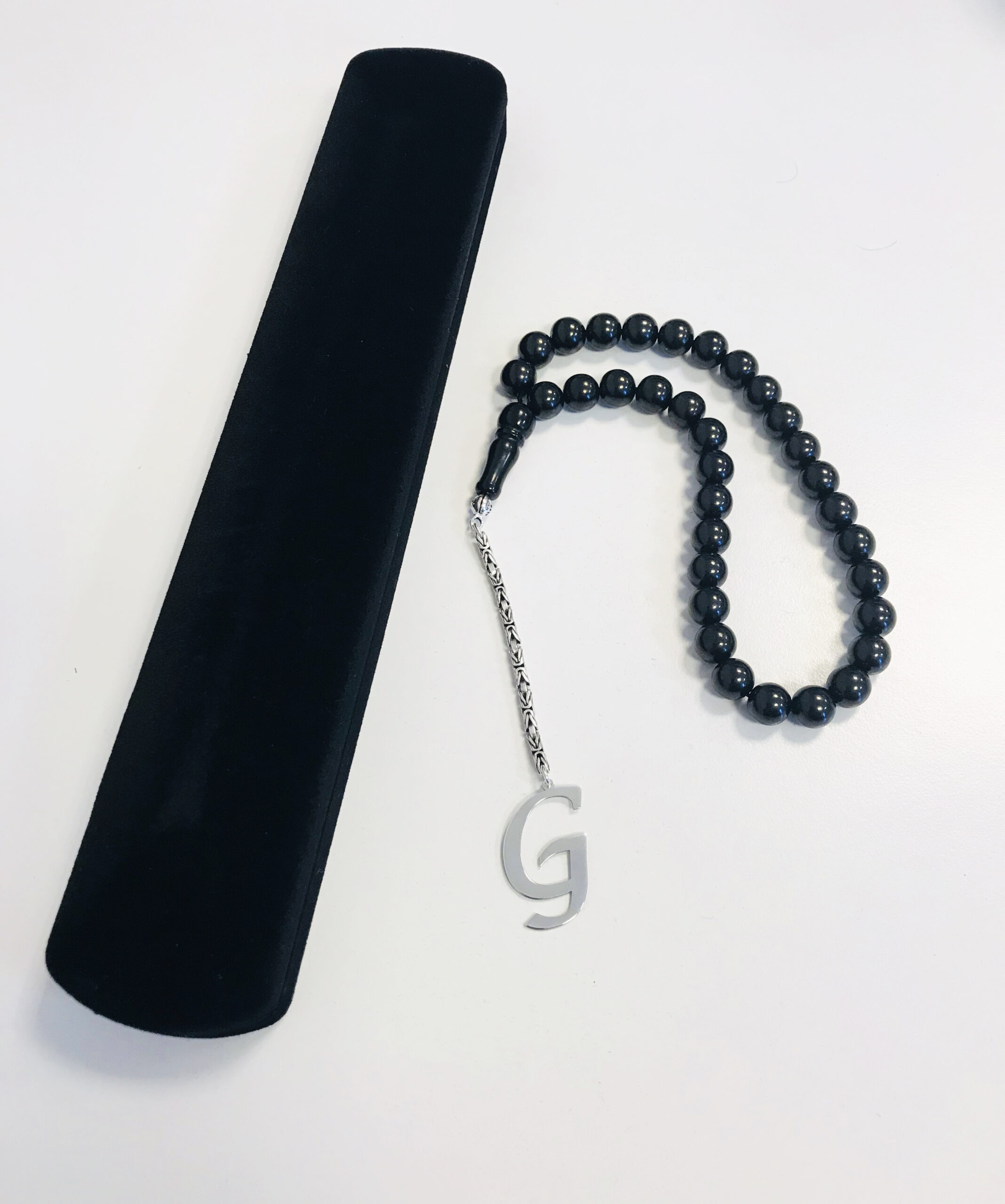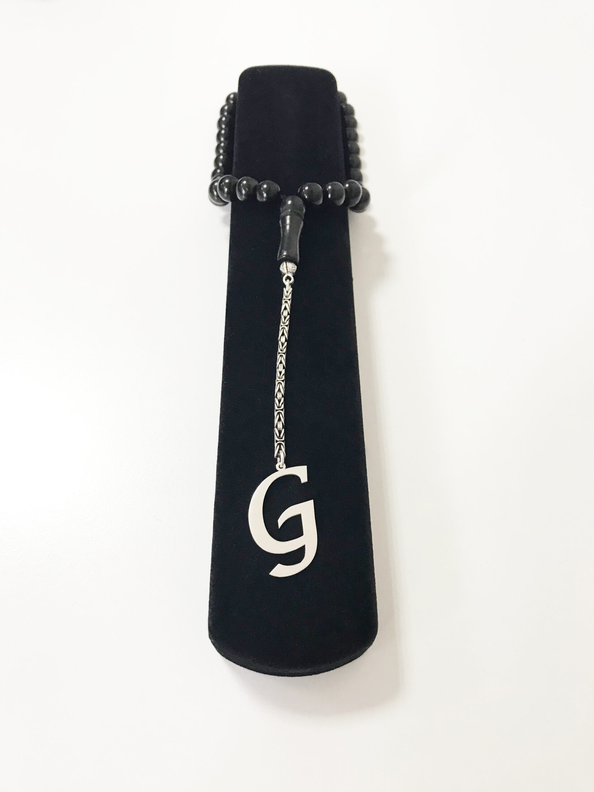 G Harfli 925 Ayar Gümüş Püskül ve Harf – Oltu Tesbih (Kral Zincir)