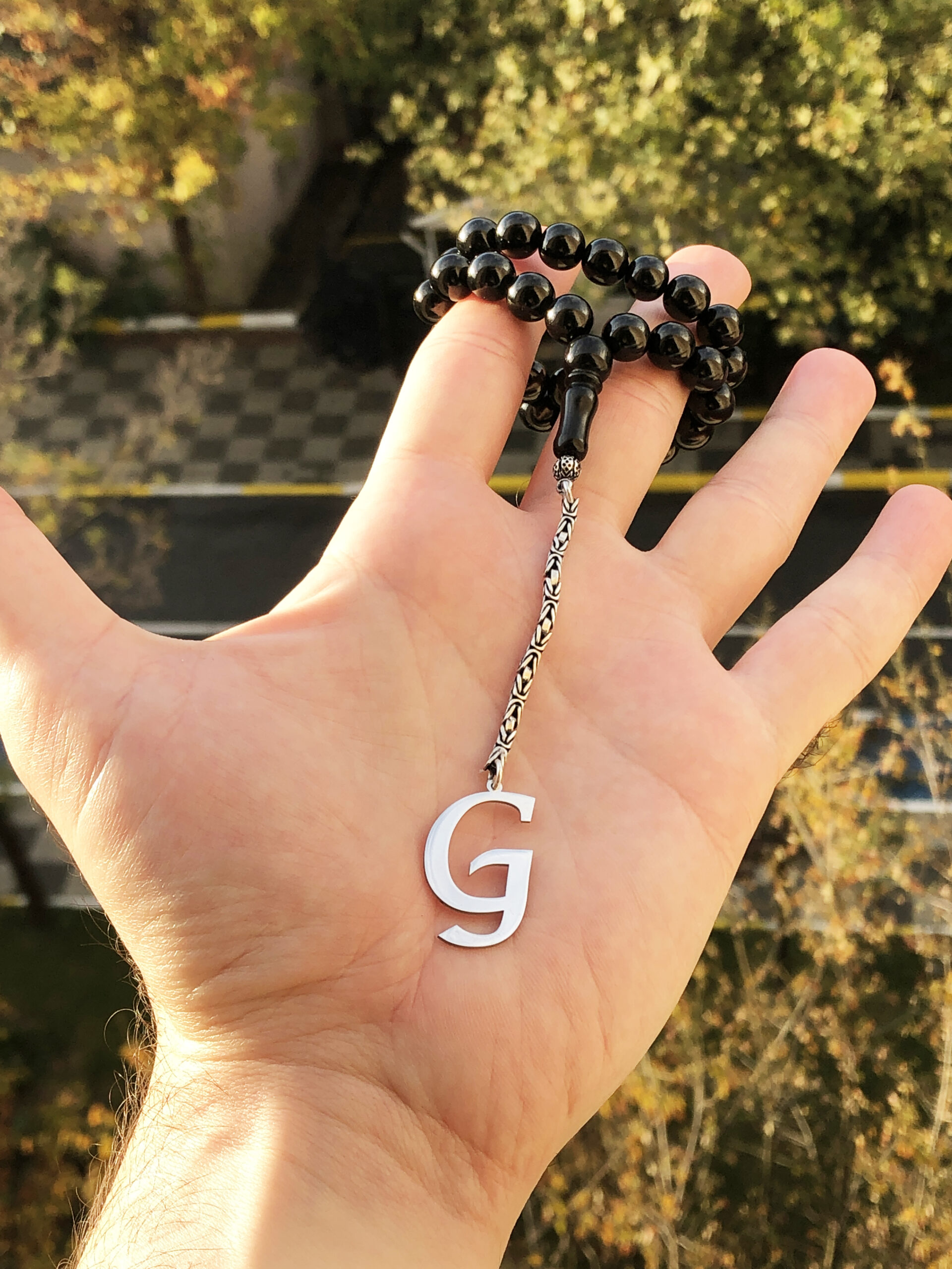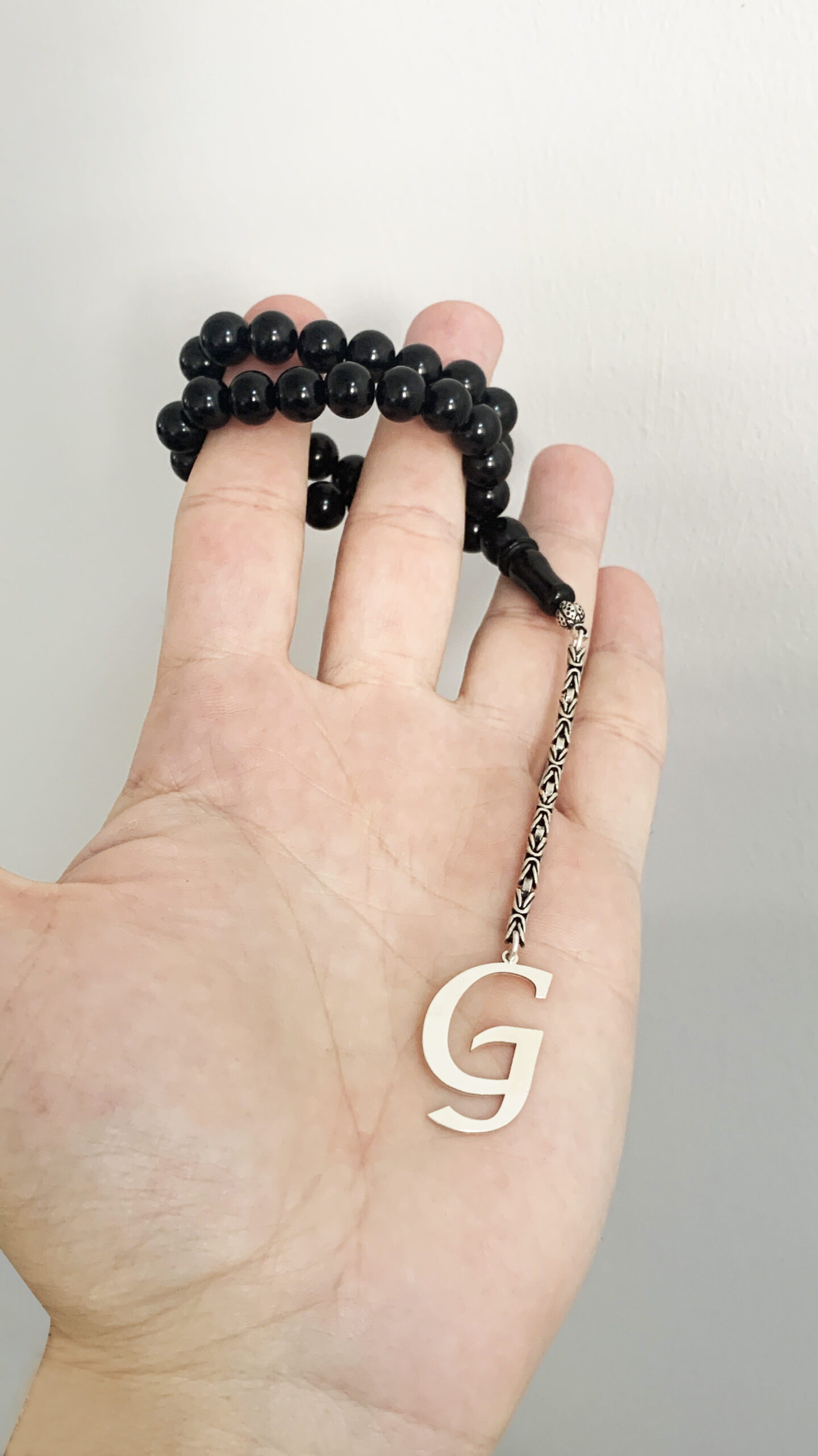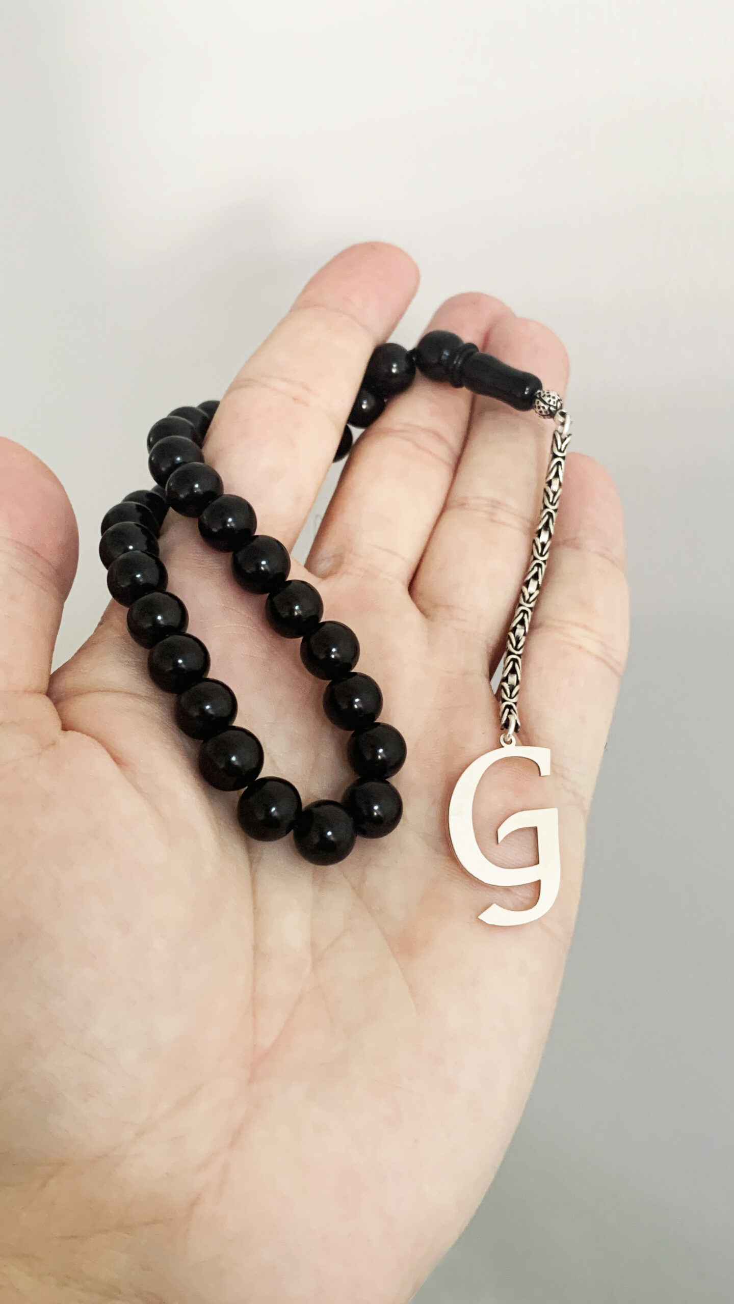 G Harfli 925 Ayar Gümüş Püskül ve Harf – Oltu Tesbih (Kral Zincir)