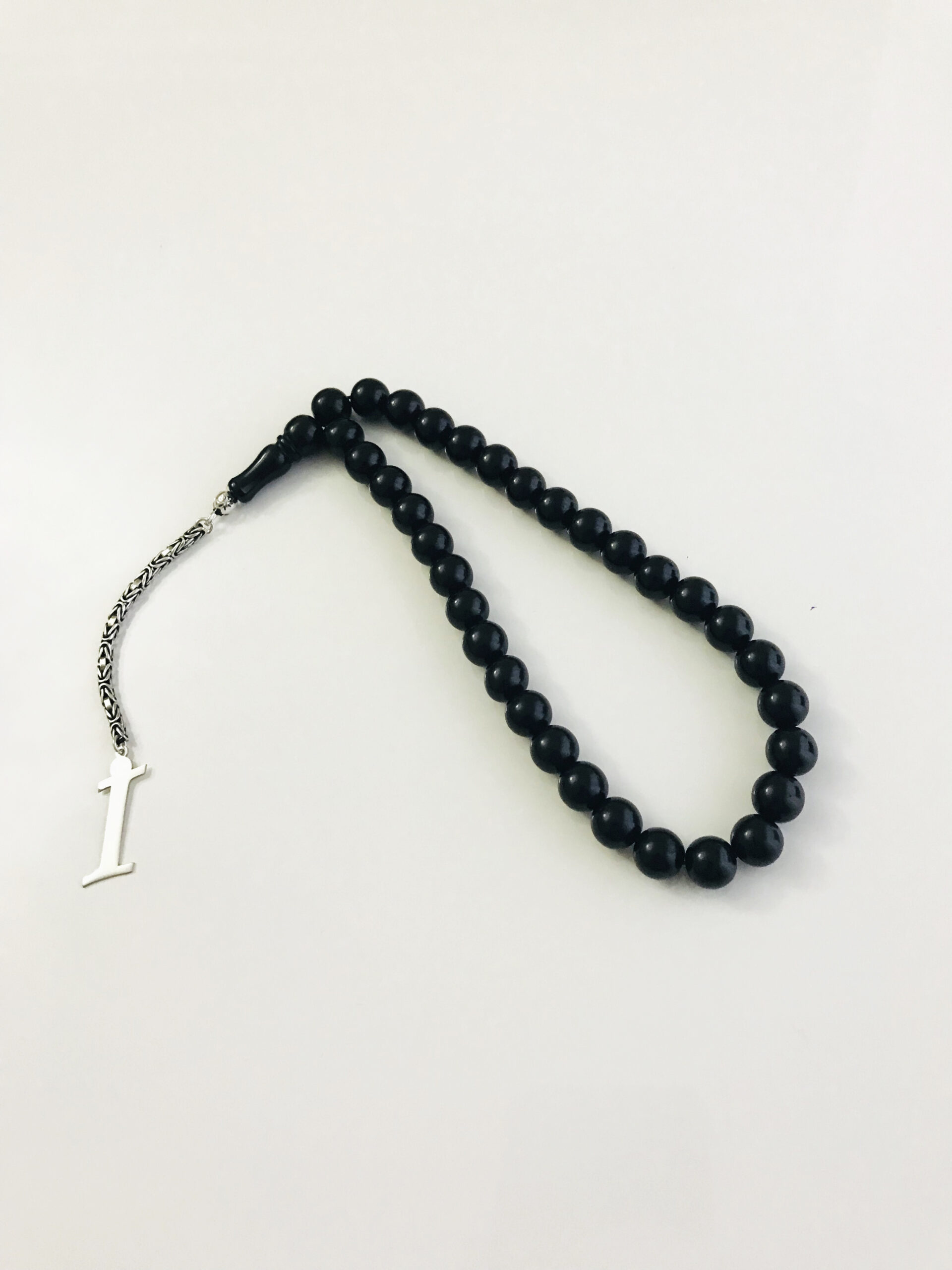 İ Harfli 925 Ayar Gümüş Püskül ve Harf – Oltu Tesbih (Kral Zincir)