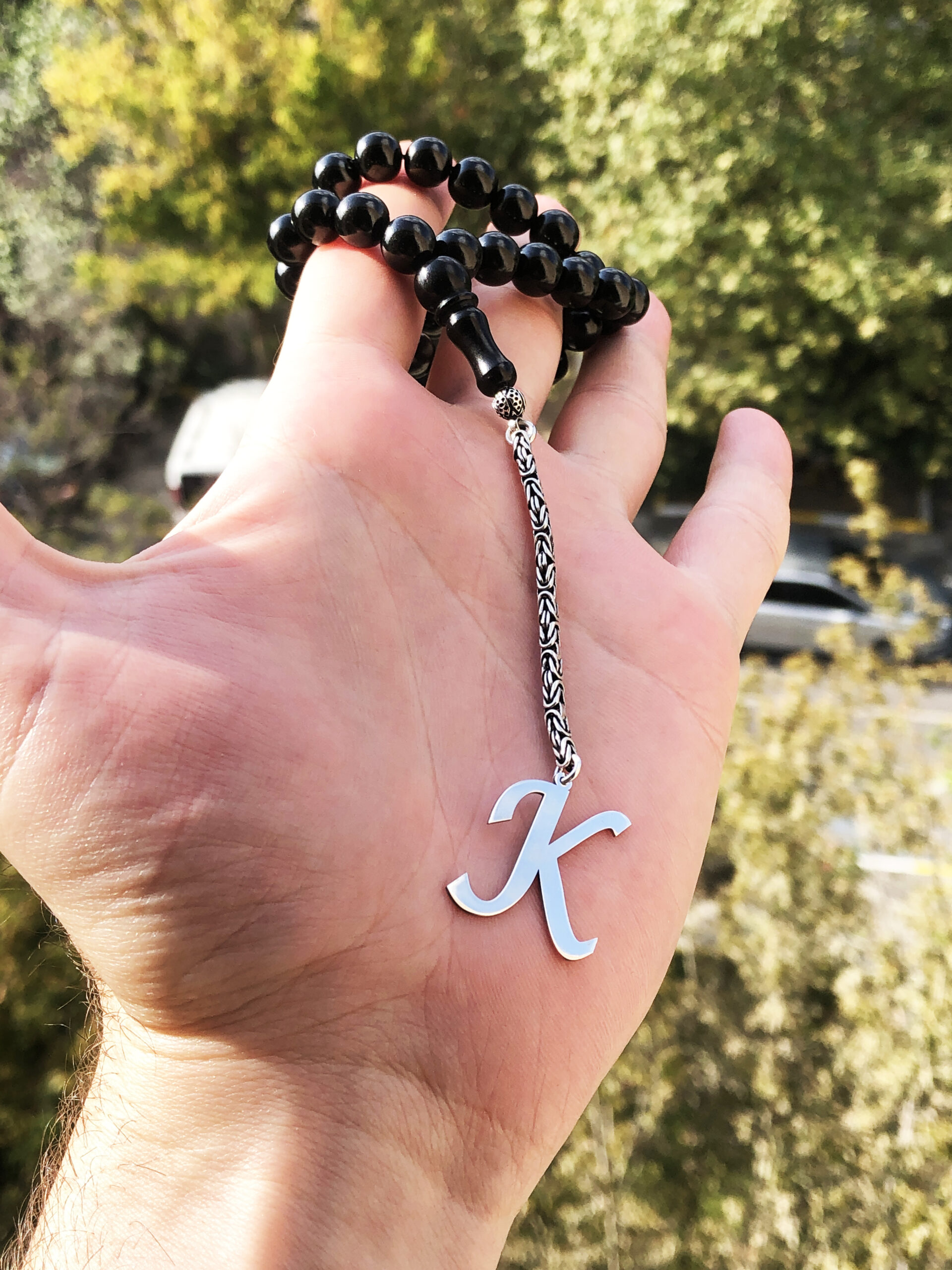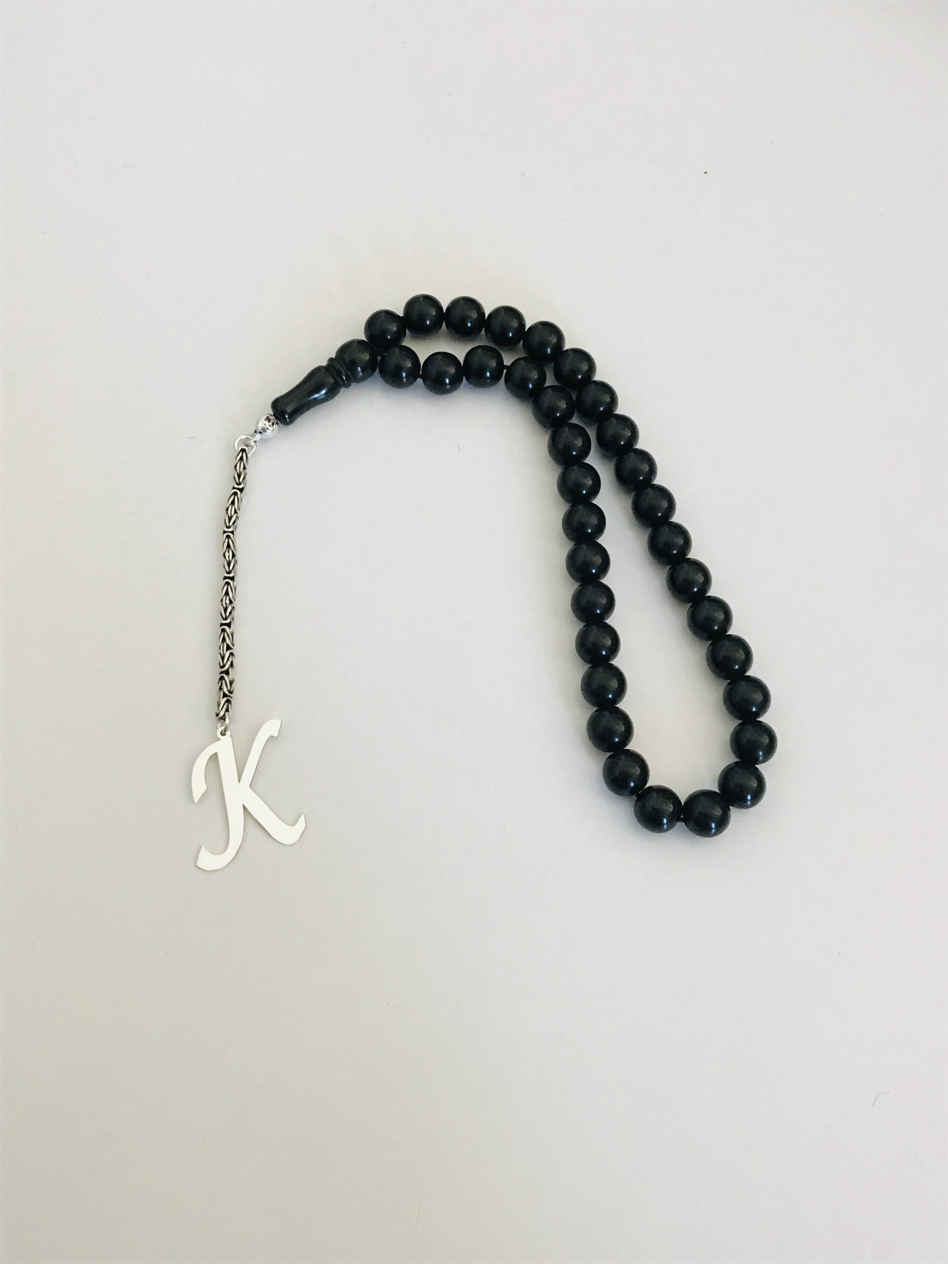 K Harfli 925 Ayar Gümüş Püskül ve Harf – Oltu Tesbih (Kral Zincir)