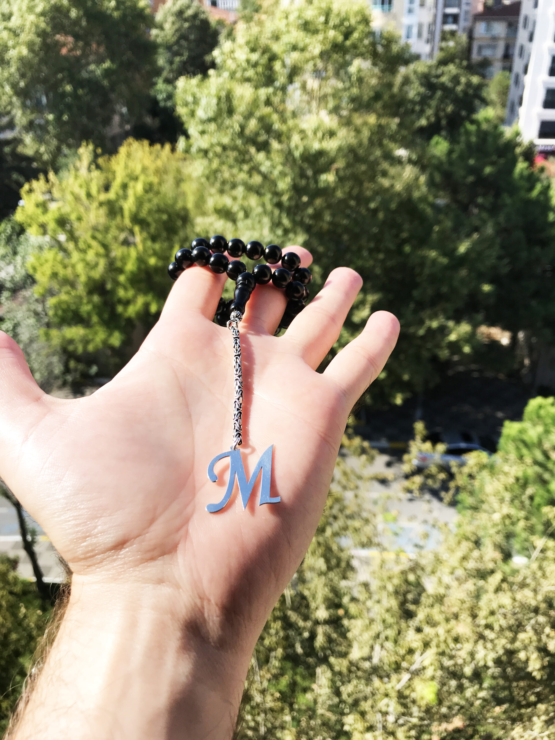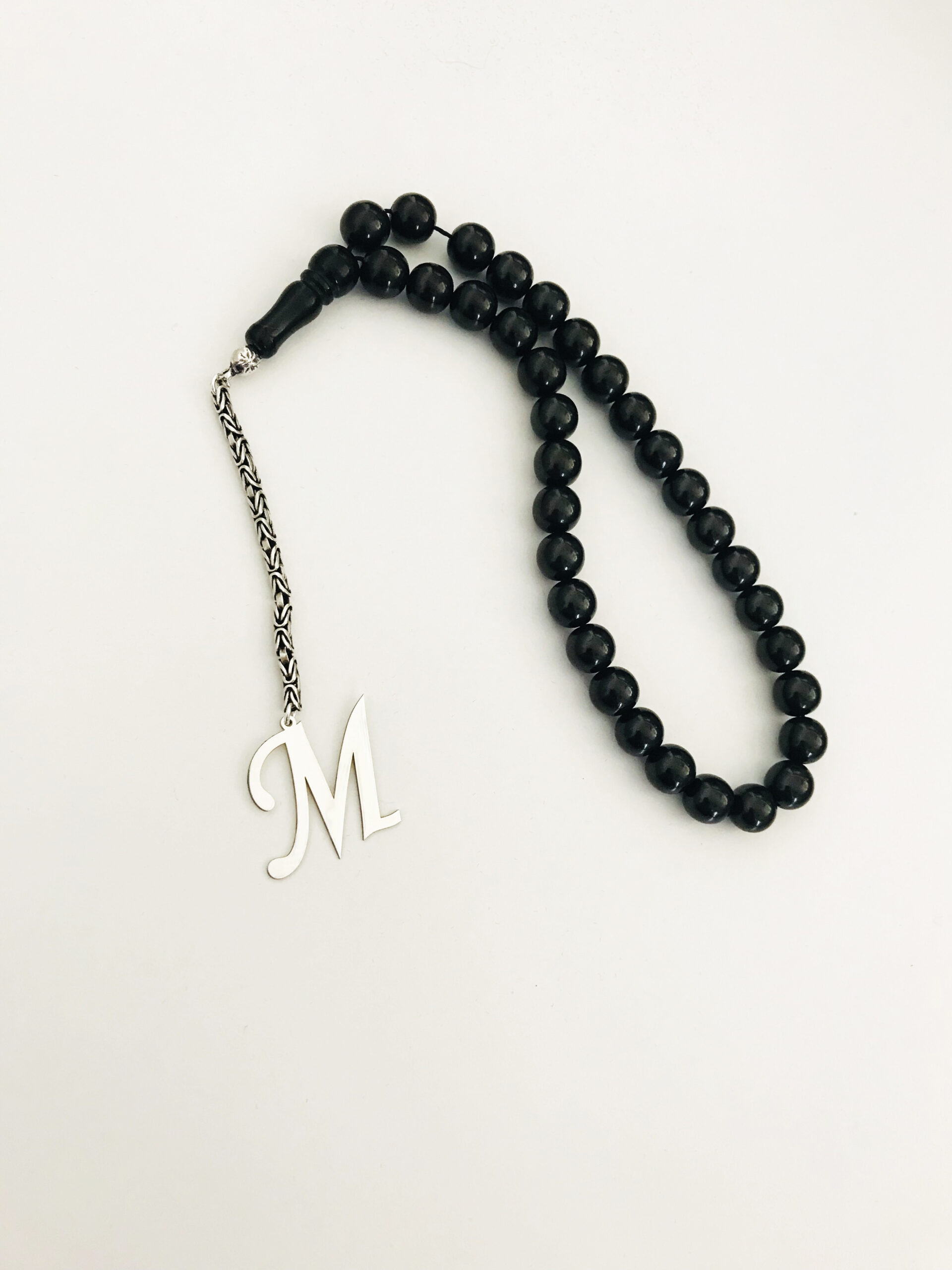 M Harfli 925 Ayar Gümüş Püskül ve Harf – Oltu Tesbih (Kral Zincir)