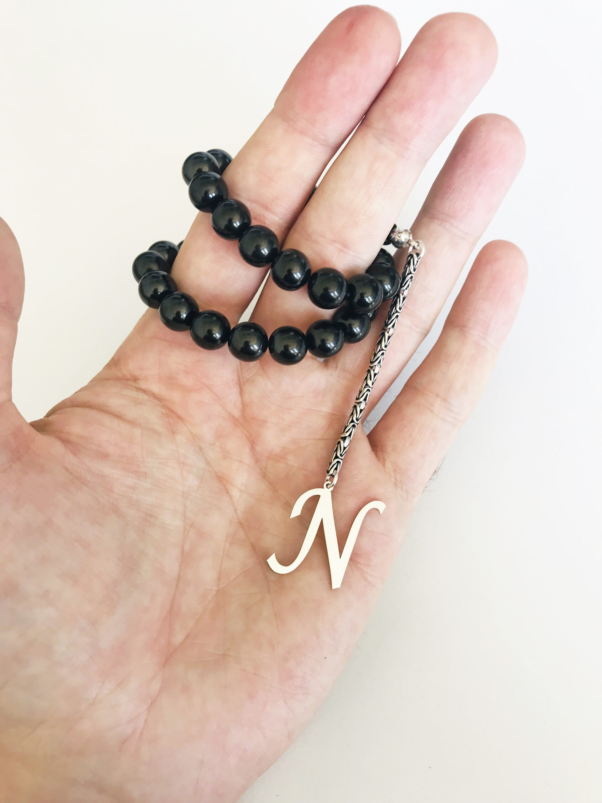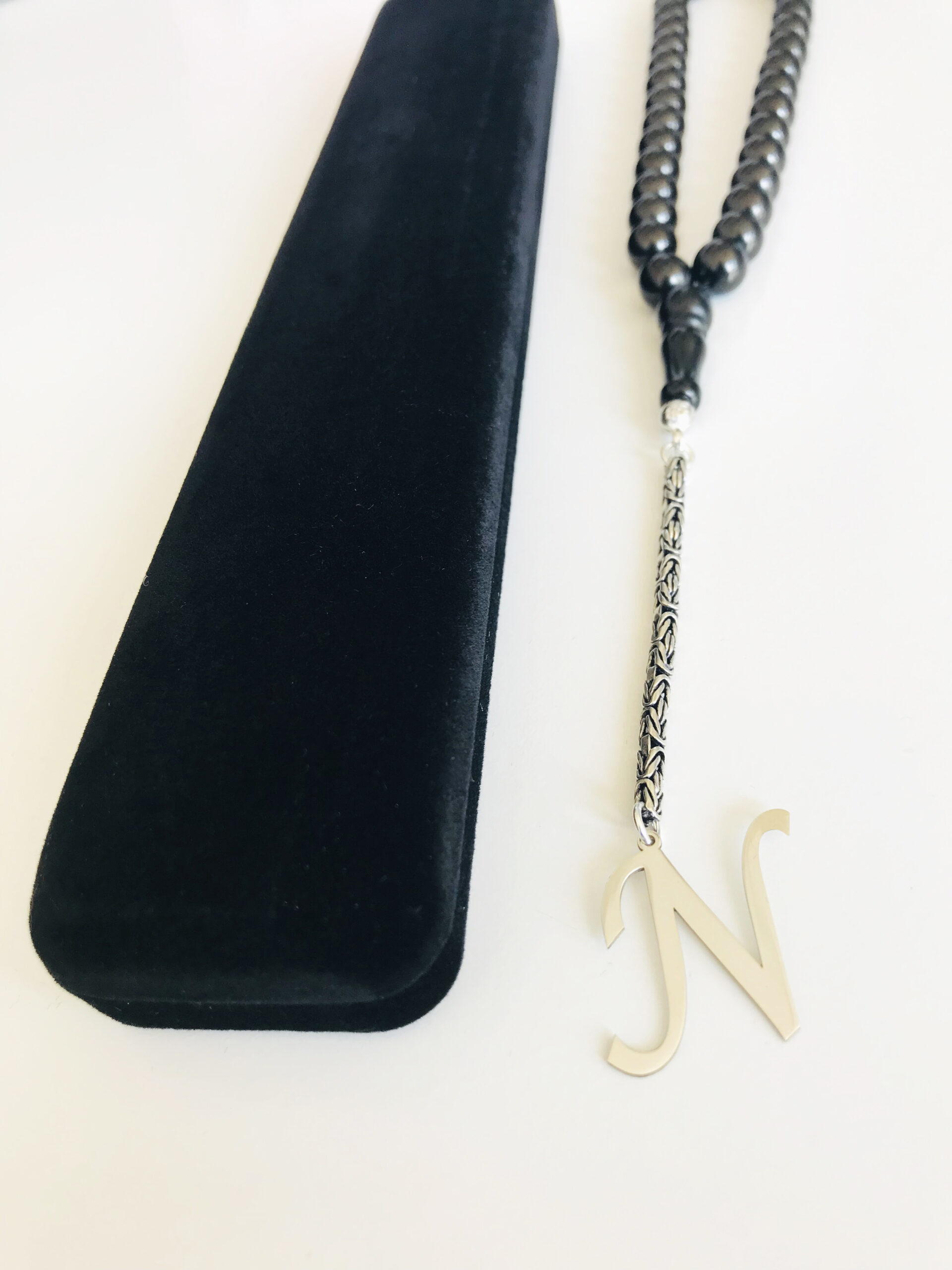 N Harfli 925 Ayar Gümüş Püskül ve Harf – Oltu Tesbih (Kral Zincir)