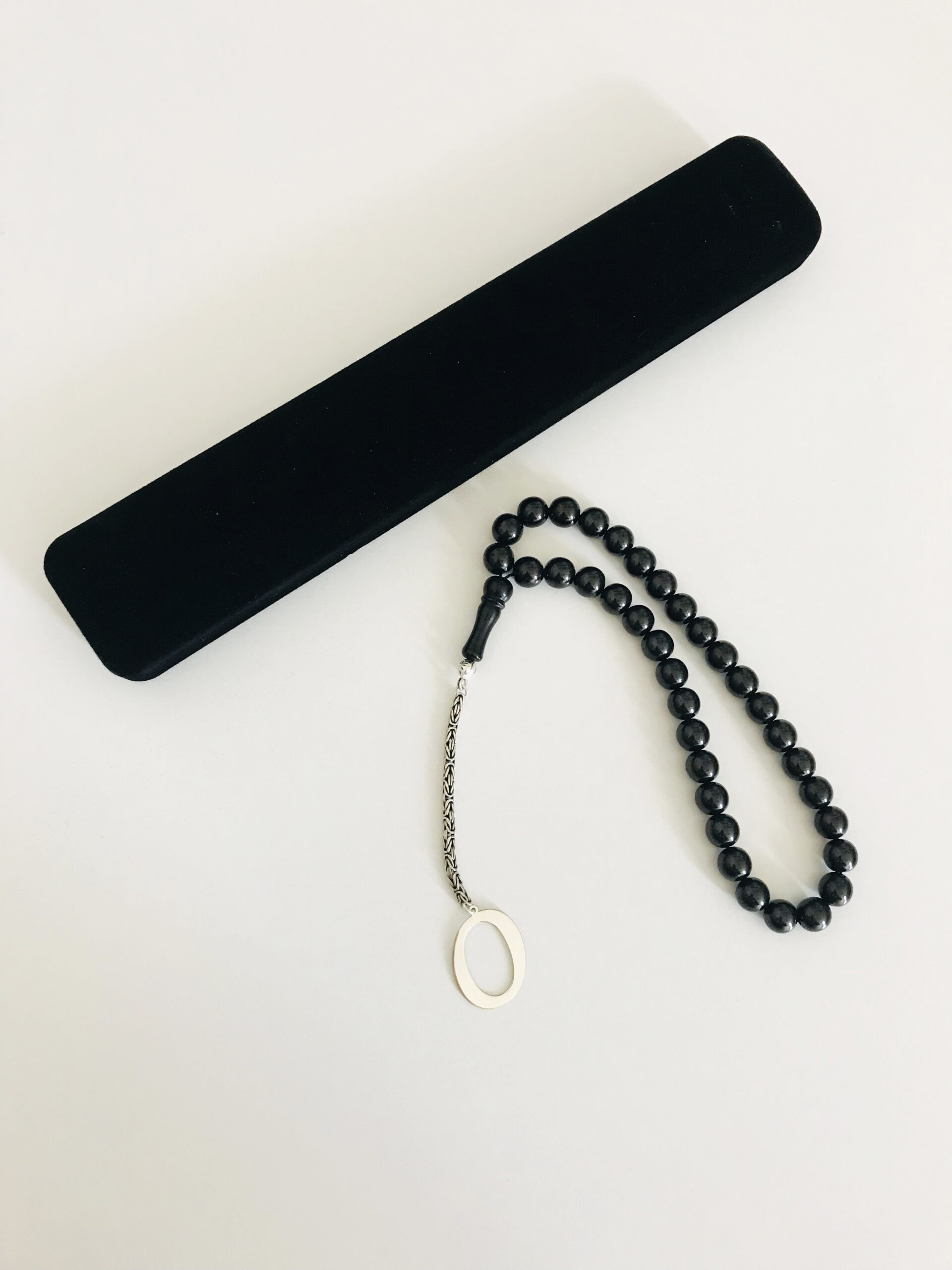 O Harfli 925 Ayar Gümüş Püskül ve Harf – Oltu Tesbih (Kral Zincir)