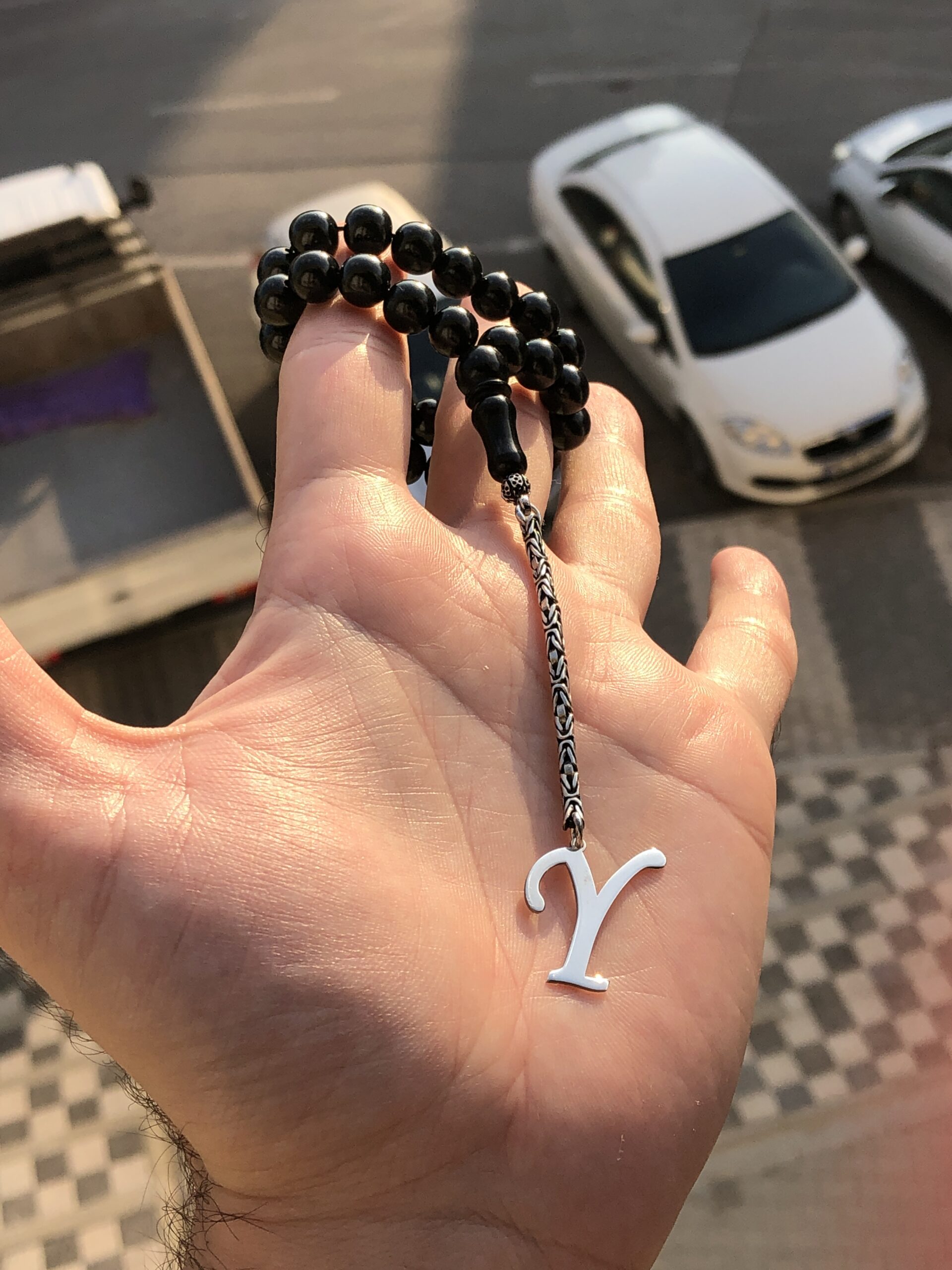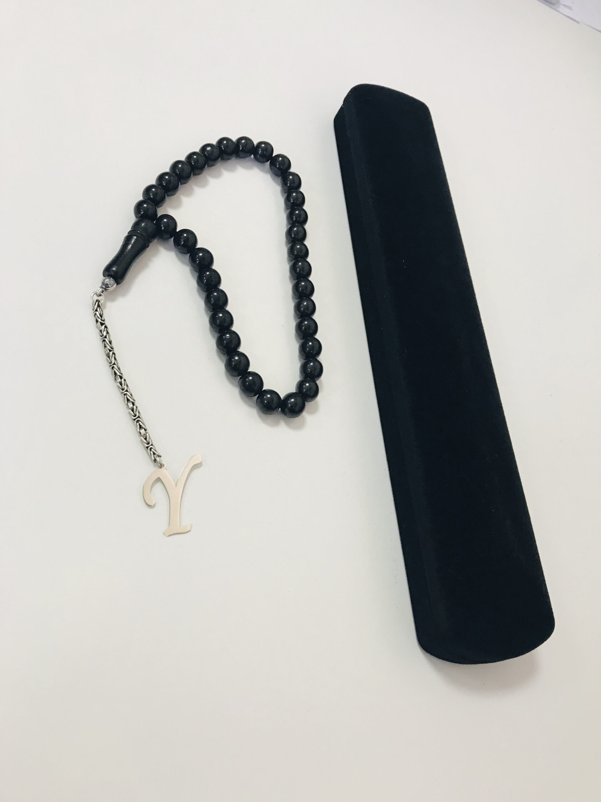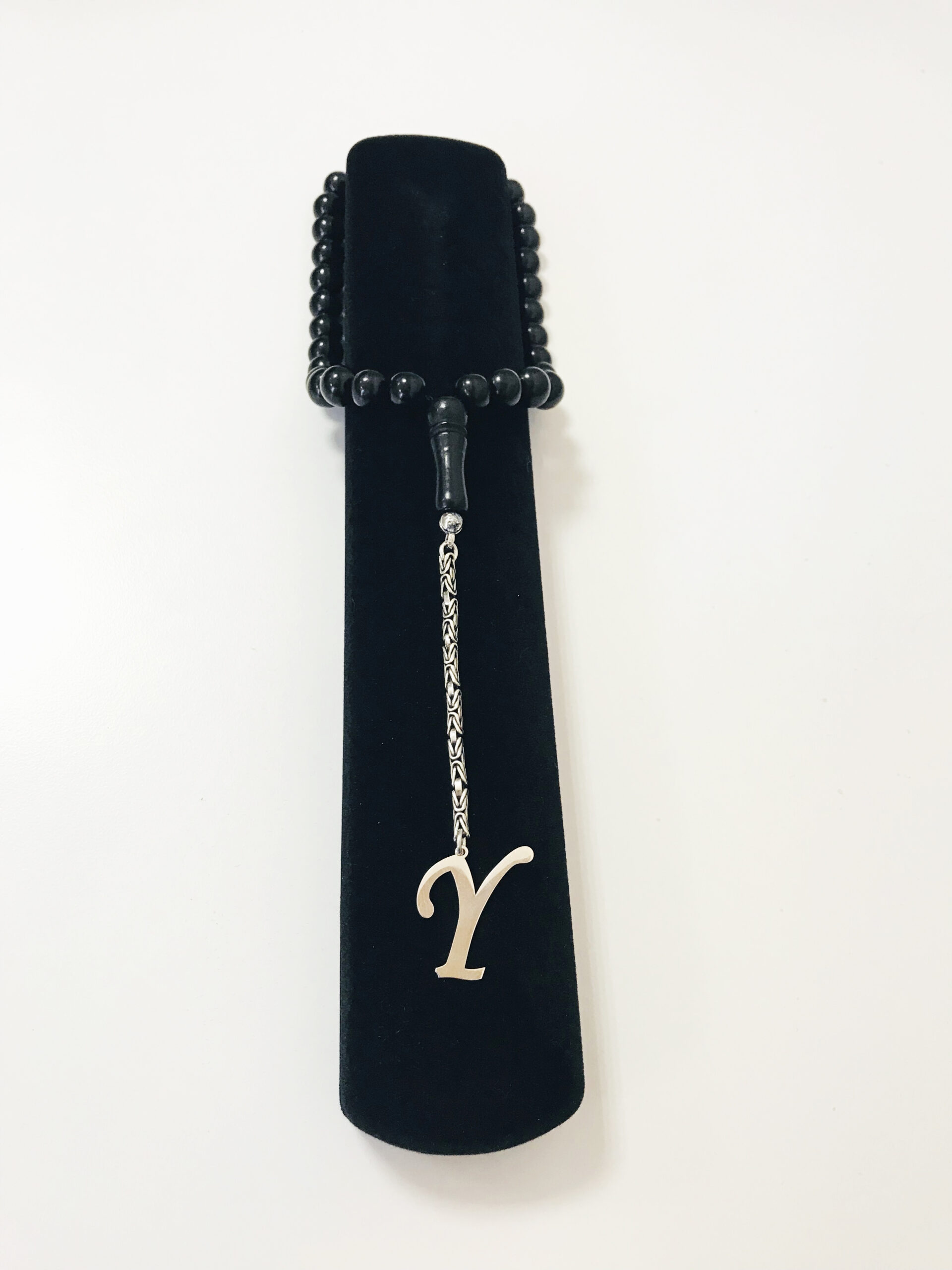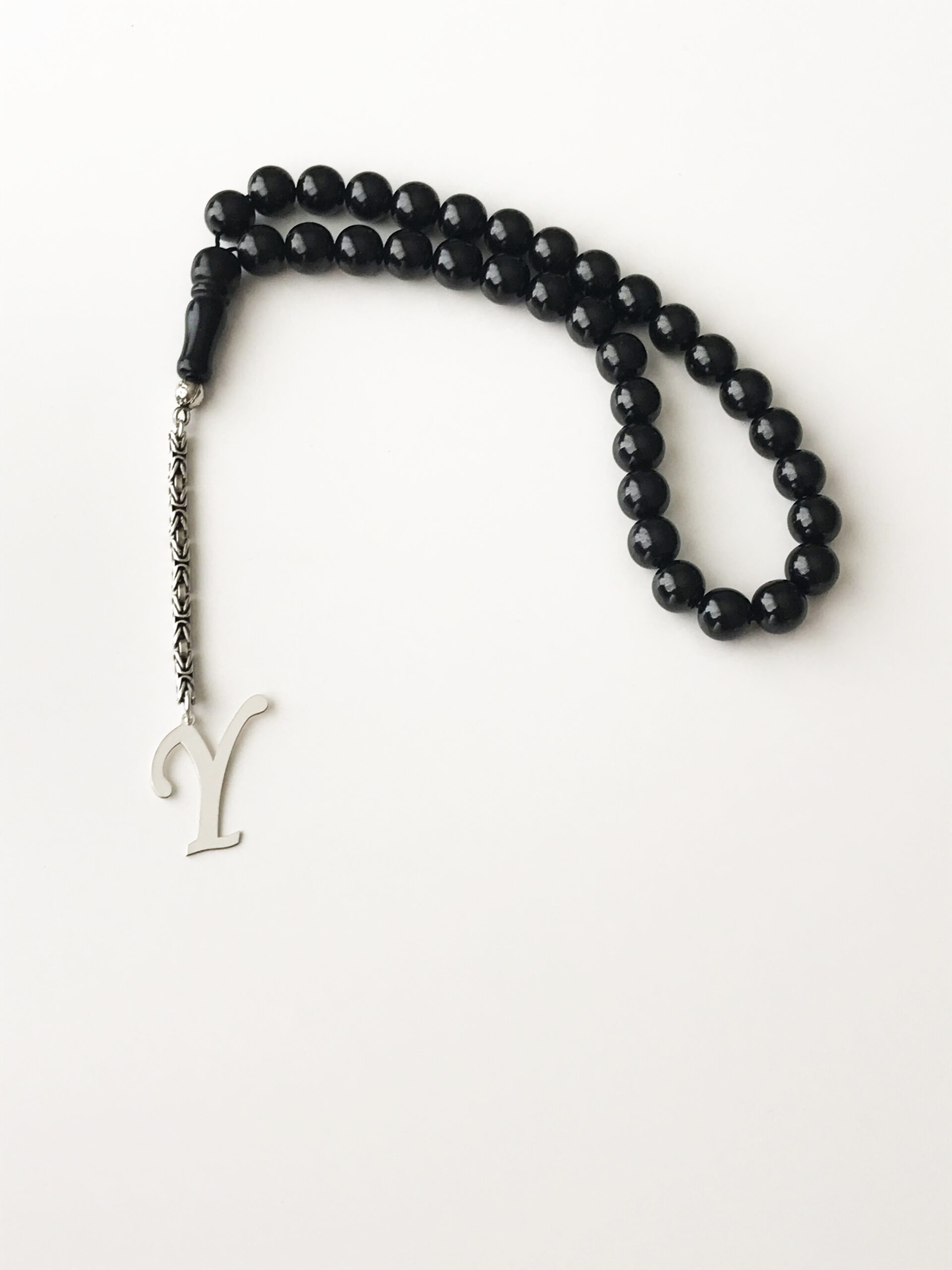 Y Harfli 925 Ayar Gümüş Püskül ve Harf – Oltu Tesbih (Kral Zincir)